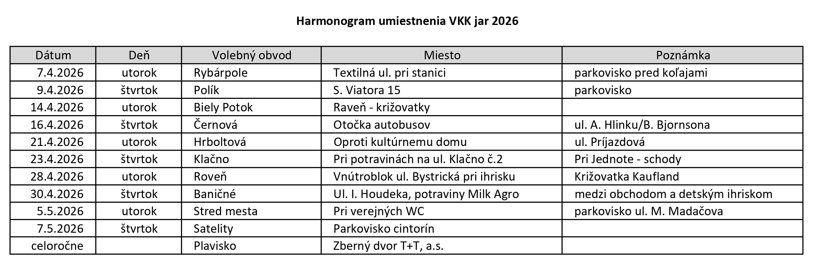 Harmonogram VKK pre volebné obvody - jar 2026